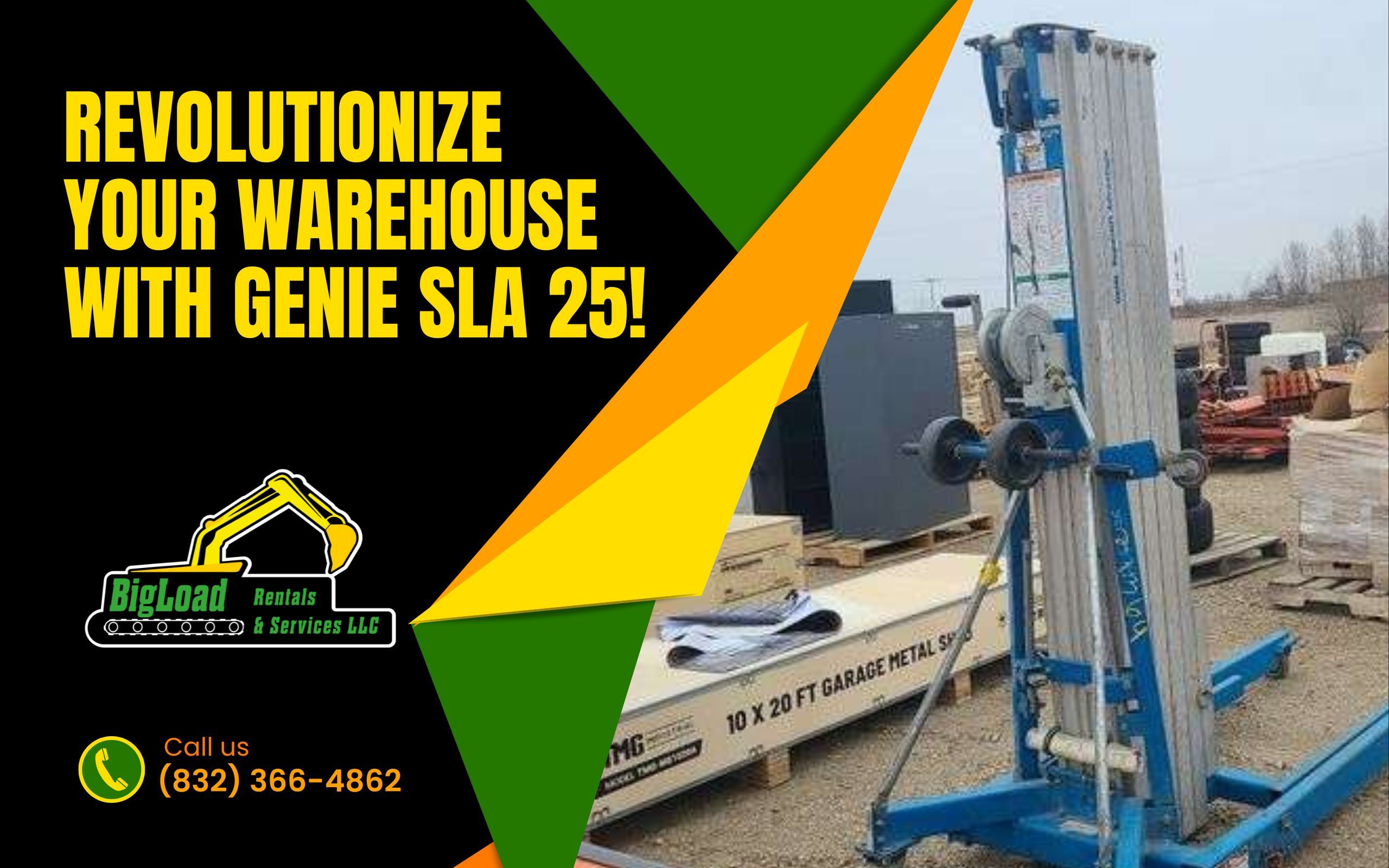 Enhance your warehouse and distribution operations with the Genie Material Super Lift SLA 25. Contact BigLoad Rentals & Services, LLC at (832) 366-4862 to learn more about how this lift can improve your material handling processes and increase efficiency in your workspace!