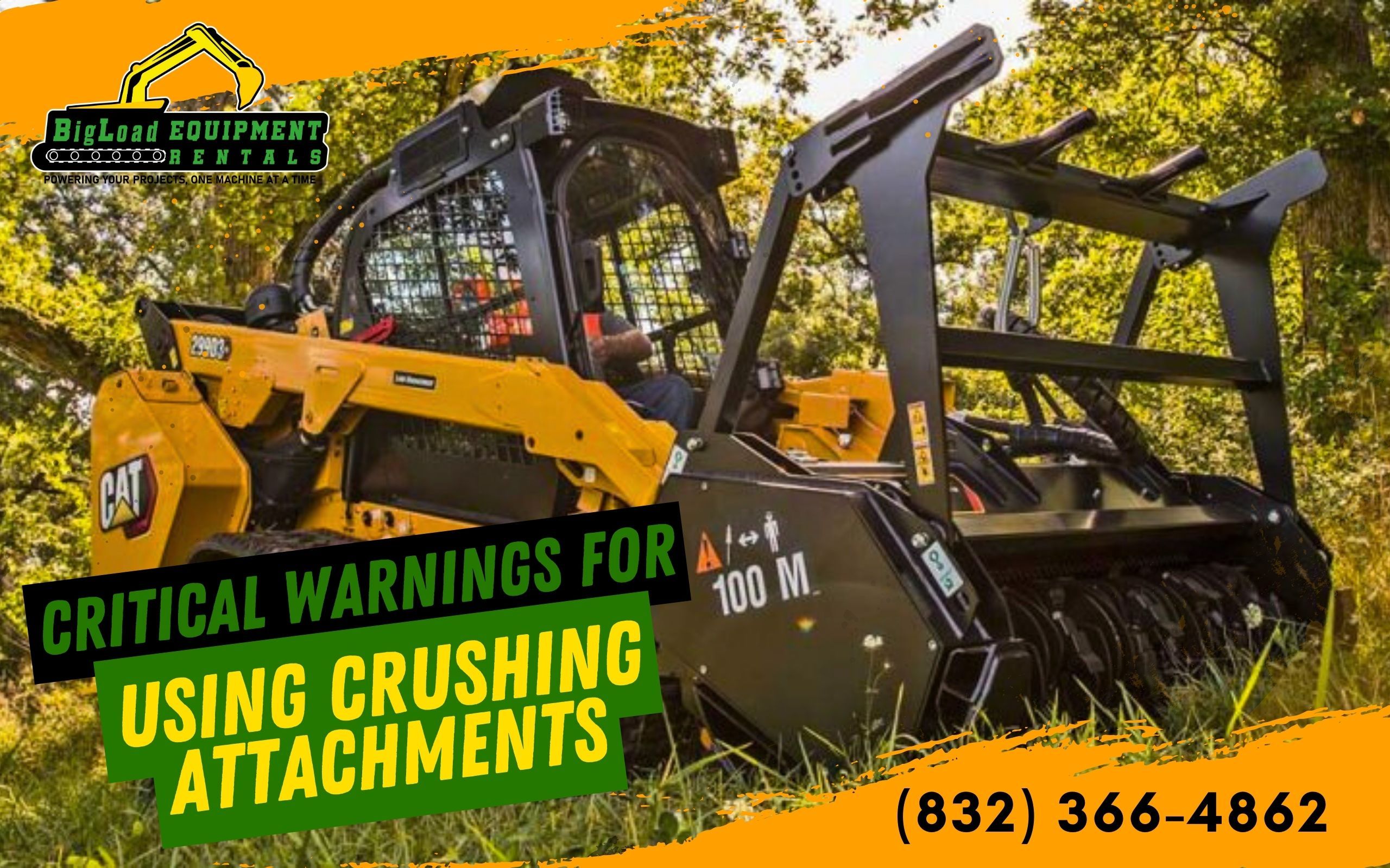 Ensure the safety and efficiency of your construction projects with properly maintained crushing attachments. Contact Big Load Equipment Rentals today at (832) 366-4862 for expert advice, training, and support on using crushing attachments safely and effectively. Let us help you enhance your operational safety and productivity. Call now to speak with a specialist!